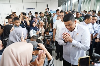 “Tadi kita meninjau arus mudik di Bandara Kualanamu, dan selanjutnya kita menuju ke Stasiun Besar menggunakan moda transportasi kereta api (Railink),” ujar Bobby, usai peninjauan bersama unsur Forkopimda Sumut.