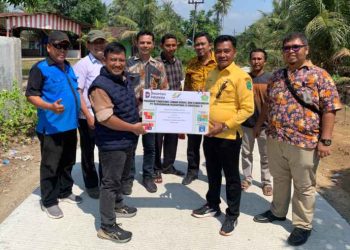 LABUHANBATU UTARA – PTPN IV Regional II melalui Kebun Berangir memberikan bantuan perbaikan jalan rabat beton di Desa Pasang Lela, ...
